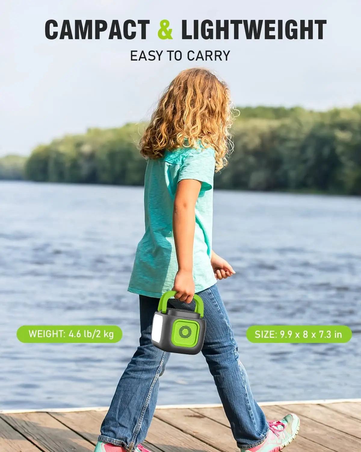 About this item: 1. Compact and Powerful Design: This portable power station weighs only 3.5 lbs and features a foldable handle for easy carrying. Ideal for home use, camping, road trips, and outdoor adventures. 2. High Capacity and Versatile Charging: Equipped with a 42000mAh battery (155Wh), it can charge multiple small devices simultaneously. Includes 7 outputs: one 110V/200W AC socket for laptops and cameras; two USB-A ports (5V/3.1A total); one Type-C port (5V/3A, 9V/2A); one 10W wireless fast charger for phones and tablets; two DC outputs (9-12.6V/10A max) for car accessories. 3. Built-in LED Camping Lantern: Features an LED flashlight with three brightness levels and lighting modes (steady, twinkling, SOS). Perfect for camping or power outages to provide reliable illumination. 4. Multiple Charging Options: Recharge the power station in three ways: via wall outlet (fully charged in about 5 hours), car adapter (12V, fully charged in about 7 hours), or solar panel under sunlight (16.4V-24V/1.5A max, approximately 6-8 hours). Note: Solar panel is sold separately. 5. Safety Features: Includes a clear LCD screen to monitor operating status easily. Built-in premium Battery Management System (BMS) protects against overvoltage, overcurrent, and overheating for safe usage. 6. What's Included: You will receive one portable power bank with AC outlet, one AC power adapter, one car charging cable, one carport cable, a user manual, plus a 12-month warranty and responsive customer service available around the clock. 7. Usage Tips: Press the 'AC' button for three seconds to turn the AC output on or off; working time can be estimated as battery capacity times efficiency divided by device power consumption. This versatile device is suitable for various activities such as fishing or traveling outdoors—a practical gift option too.