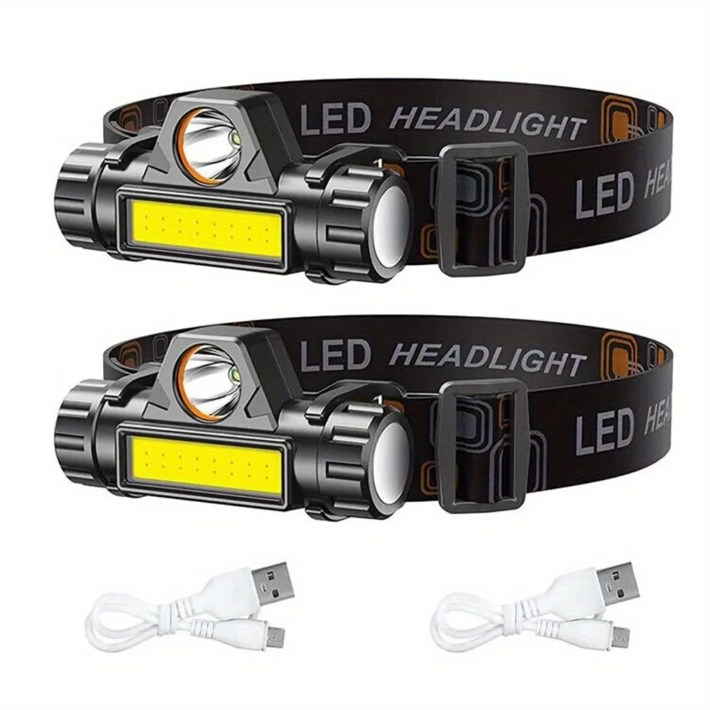 2X USB Rechargeable LED Headlamp Headlight Head Light Flashlight