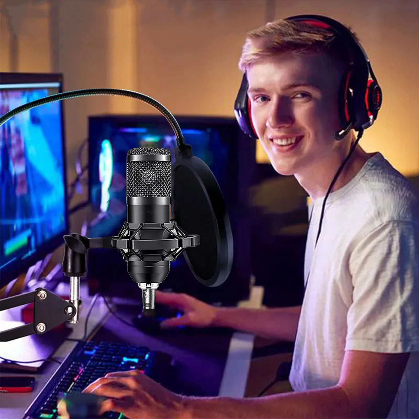 1 x Recording Studio Package (microphone, V8K sound card, shock mount, pop filter, adjustable scissor arm suspension for microphone, and power cable)