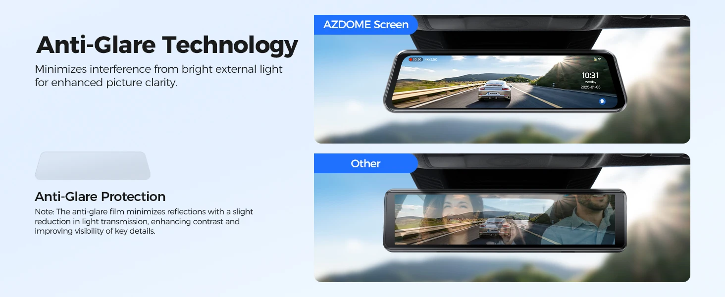 AZDOME 4K+2.5K Rearview Dash Cam PG17 Max 12'' Touch Screen Mirror Dash Cam with ADAS BSD LCA Car DVR Loop Recording 24H Parking