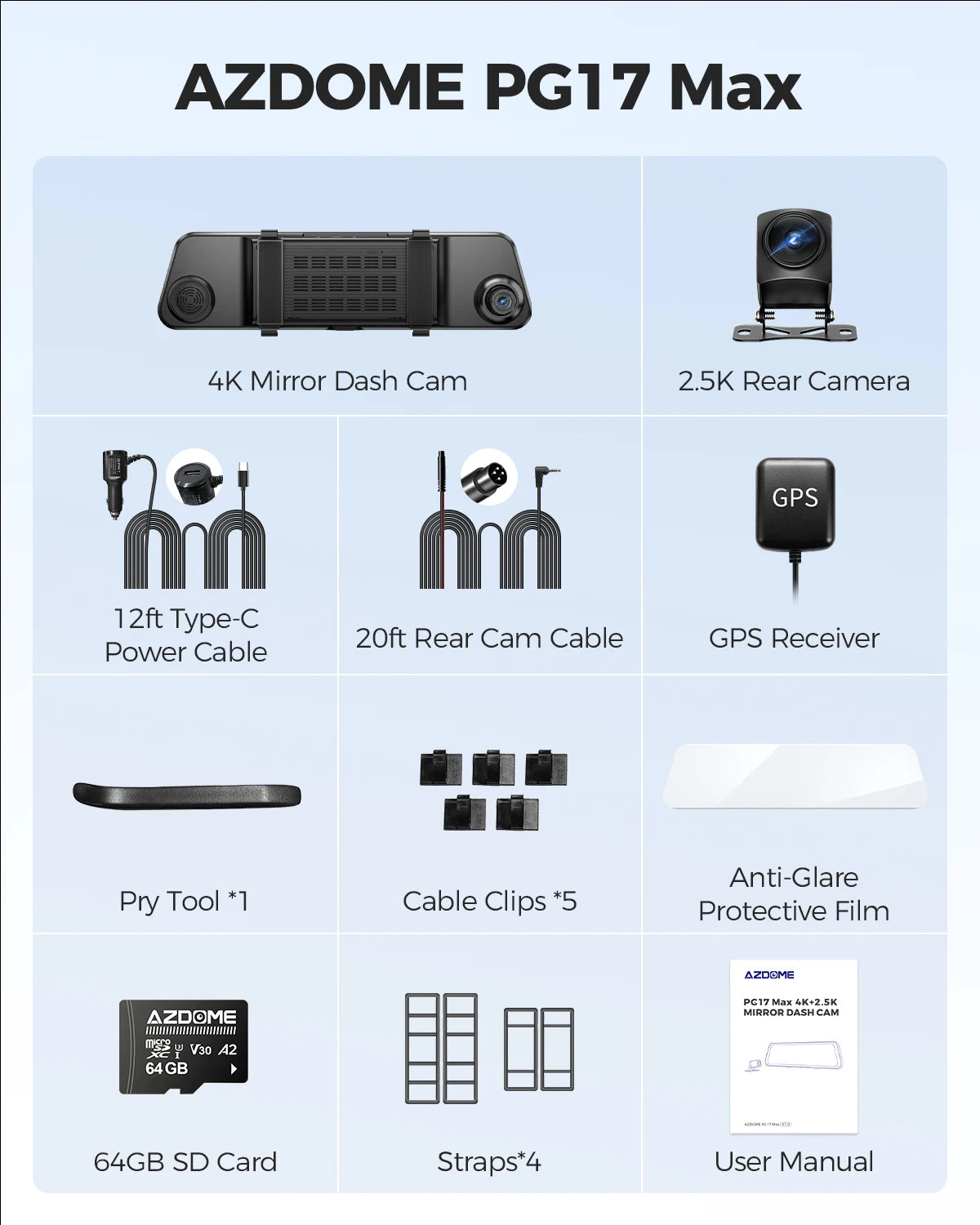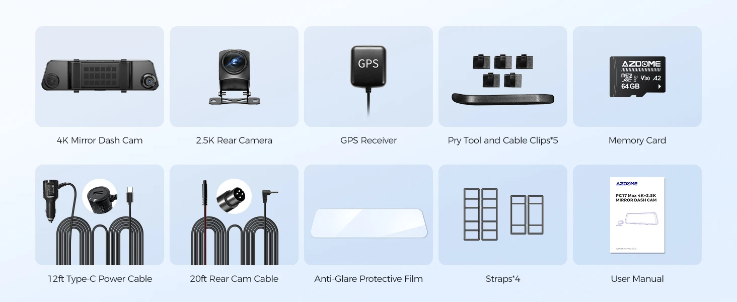 AZDOME PG17 Max 4K+2.5K Rearview Dash Cam 12'' Touch Screen Mirror Dash Cam with ADAS BSD LCA Car DVR Loop Recording 24H Parking