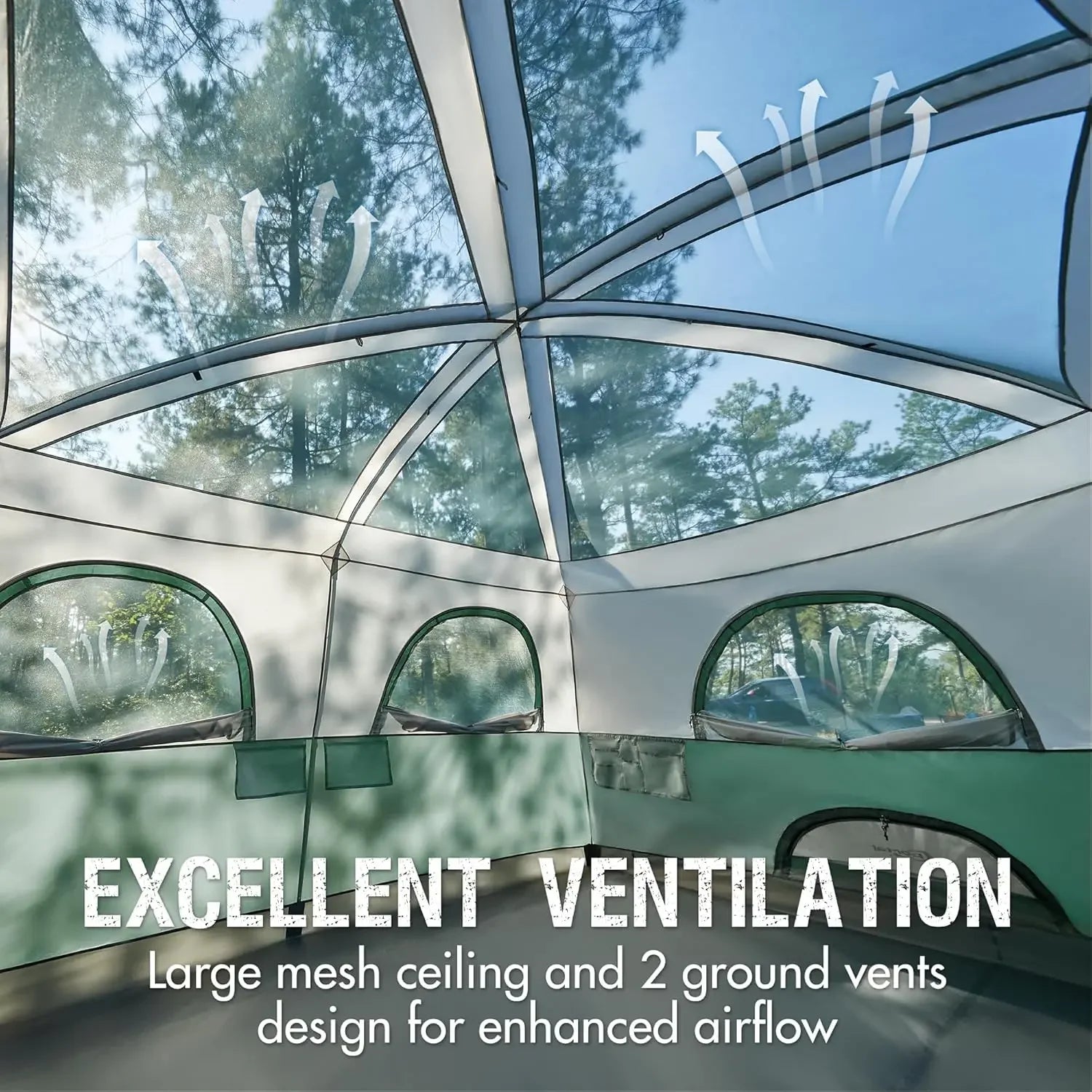 - AIRFLOW & VIEWS: Two D-shaped doors, six mesh windows, two ground vents, and a mesh ceiling provide excellent ventilation while minimizing condensation. Enjoy stunning views through the expansive mesh roof