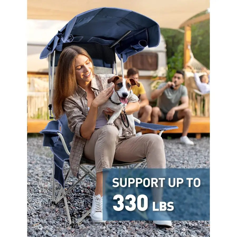 Chair with Canopy Shade, Folding Camping Chair with Canopy with Cup Holder, Side Pocket for Camp, Beach, Tailgates, Fishing Supp
