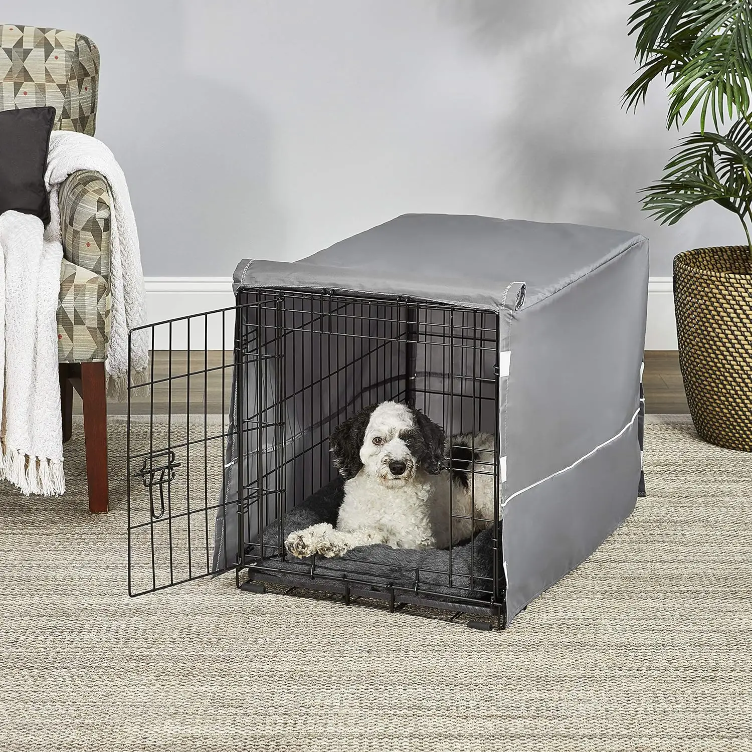 Double Door Dog Crate Kit with Bed and Cover for Medium Breeds, 30-inch Pet Cage