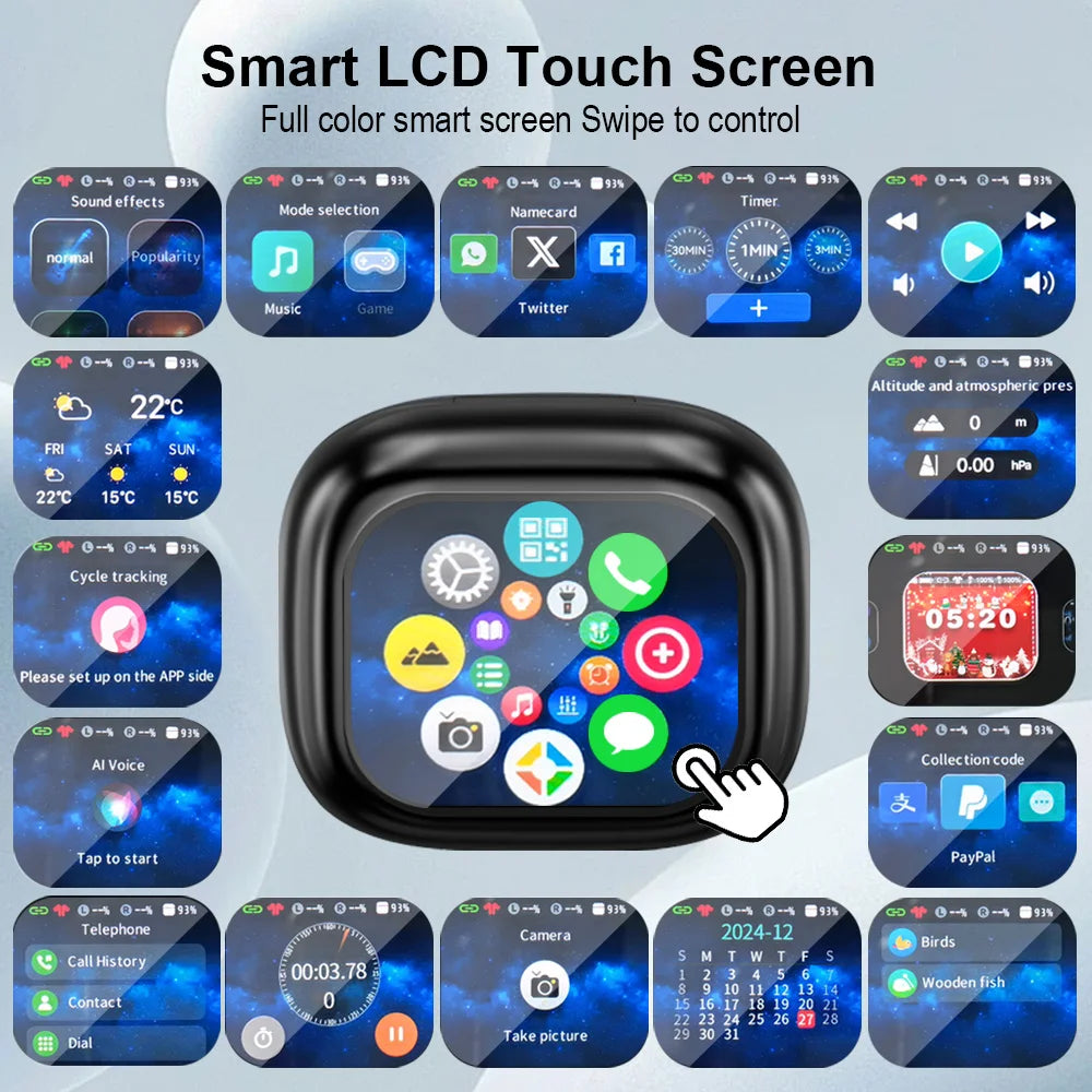 GREATWALL Original TWS Wireless Bluetooth Earphones Earbuds Smart LCD Touch Screen With APP HiFi Stereo Sound Headphones HD Call
