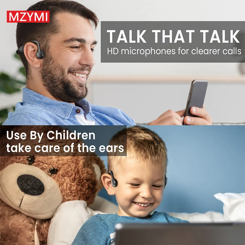 ✅Open-Ear Design--Bone conduction headphones feature an open-ear design that transmits high-quality audio through the skull, thus reducing the burden on the ears. The wireless bluetooth headset is lighter in weight and more comfortable to wear, which brings you a comfortable experience even when you wear it all day long.