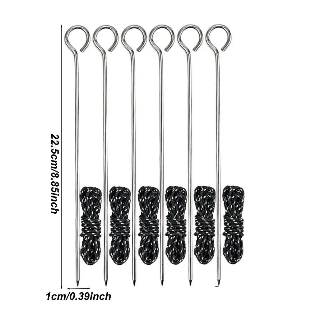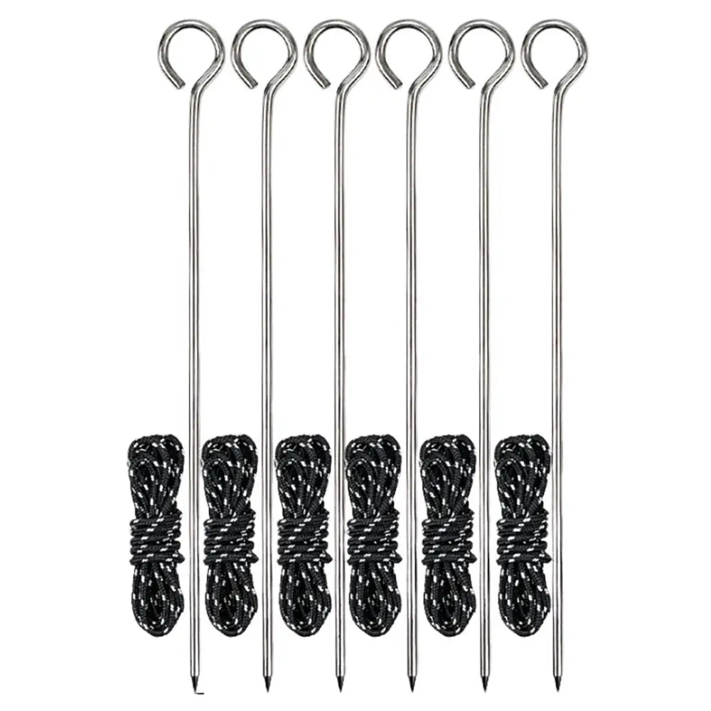 stainless steel Tent Pegs Tent Nails with Rope Camp Stakes Ground Pegs Rustproof Rod Nail Spike Garden Stakes Hard Ground Pegs