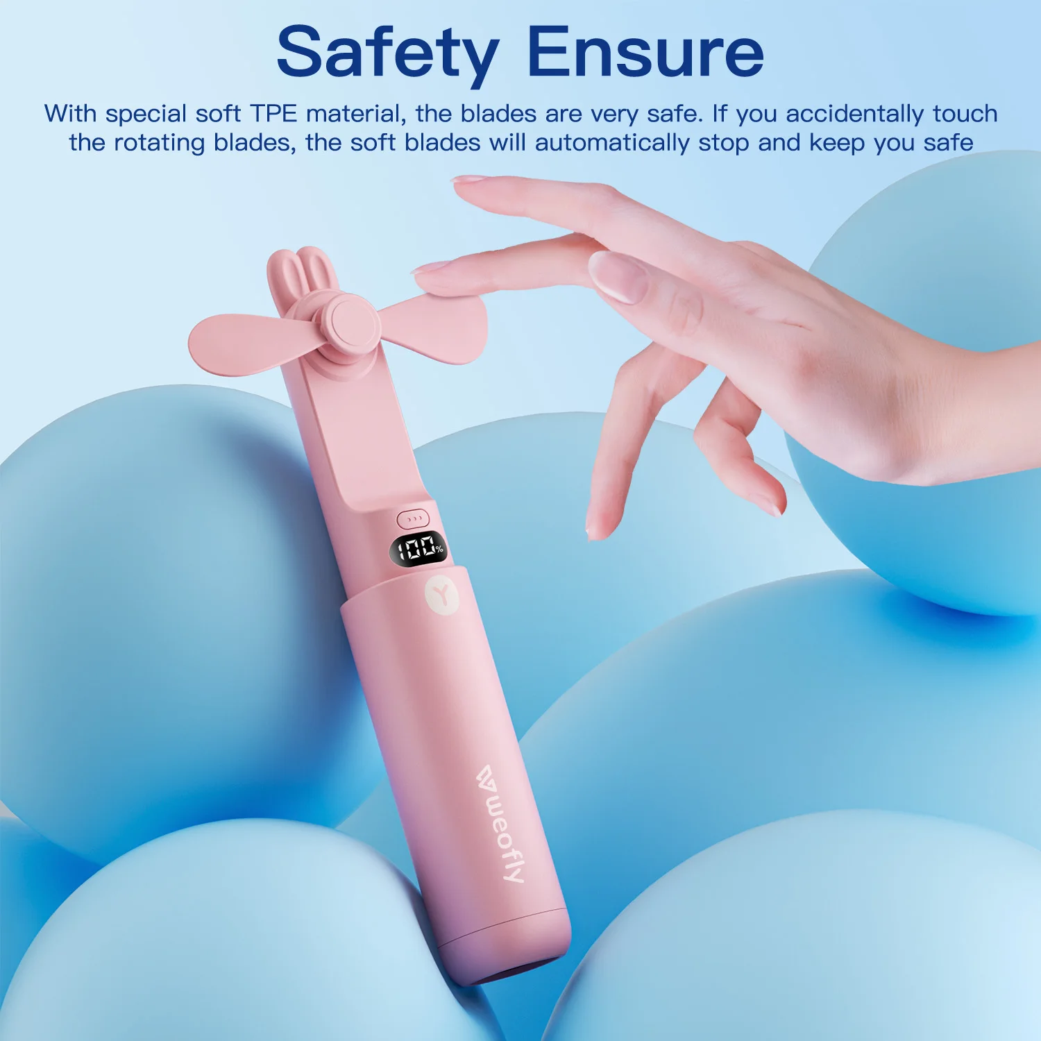 Weofly Mini Foldable Hand Fan, Ultra-Portable & Powerful cooler,2000mAh Rechargeable Cooling,Lightweight for Travel Outdoor Fan